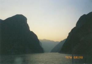 平成9年8月15日から22日の間の3泊4日で重慶から武漢までの三峡下りの旅行をしました。大阪空港から5人、成田空港から10人の合計15人が参加したパック旅行で、成田からガイドの人が同行するものでしたが、中国では、中国国際旅行社のスルーガイドが同行し、それぞれの訪問地では、地元の旅行社のガイドが同行するという同行ガイドがパックされていました。これが中国のやり方と言ってしまえばその通りですが、・・・。また、特に上海のガイドは観光客向けの価格を付けた予定外の土産物屋(普通の商店)に連れ込んでバックマージンをポッケにと言うのが見え見えで、この点を除けば、いい景色の所が一杯の満足のできたいい旅行でした。同じパック旅行に参加した方の中には三国志に興味を持つ歴史通と言うより三国志通というほうがいいような方が多くいました。