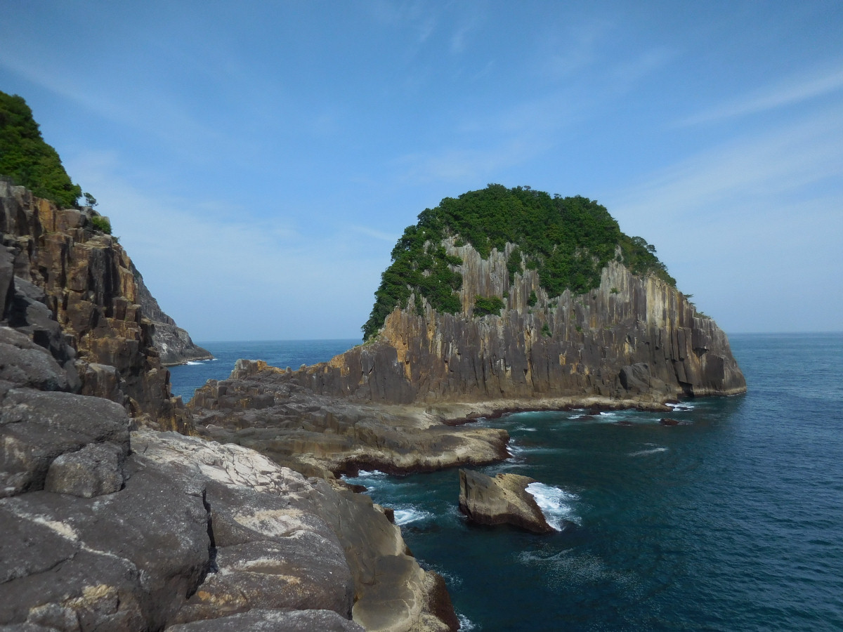 熊野灘にある柱状節理の景勝地です。ずっと以前から承知していましたが、海岸を通る国道311号線も狭く行きにくいところと思っていましたので、長い間行けませんでしたが、高速道路も尾鷲まででき、311号線も広い道になっていましたので、行き先として選びました。せっかく行くのですから、陸からだけからでは面白くないので、観光船に乗って午前中に海から見て、午後は国道311号線にある駐車場から1.9 km歩いて訪れました。5月の連休の最終日でしたが、岩場の上はかなり暑かったので、夏場はお薦めではないかと思いました。