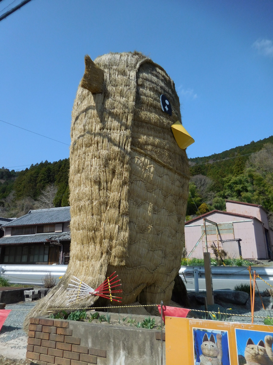 地域振興のために最近毎年地域の方が作り続けている大きな藁の像で、今年はコロナ渦での「疫病退散」「無病息災」の願いを込めて6mにもなる稲わらの巨大モニュメント「あまちゃん」としたとのことでした。 期待以上の迫力ある藁の像でした。v(^_^)v